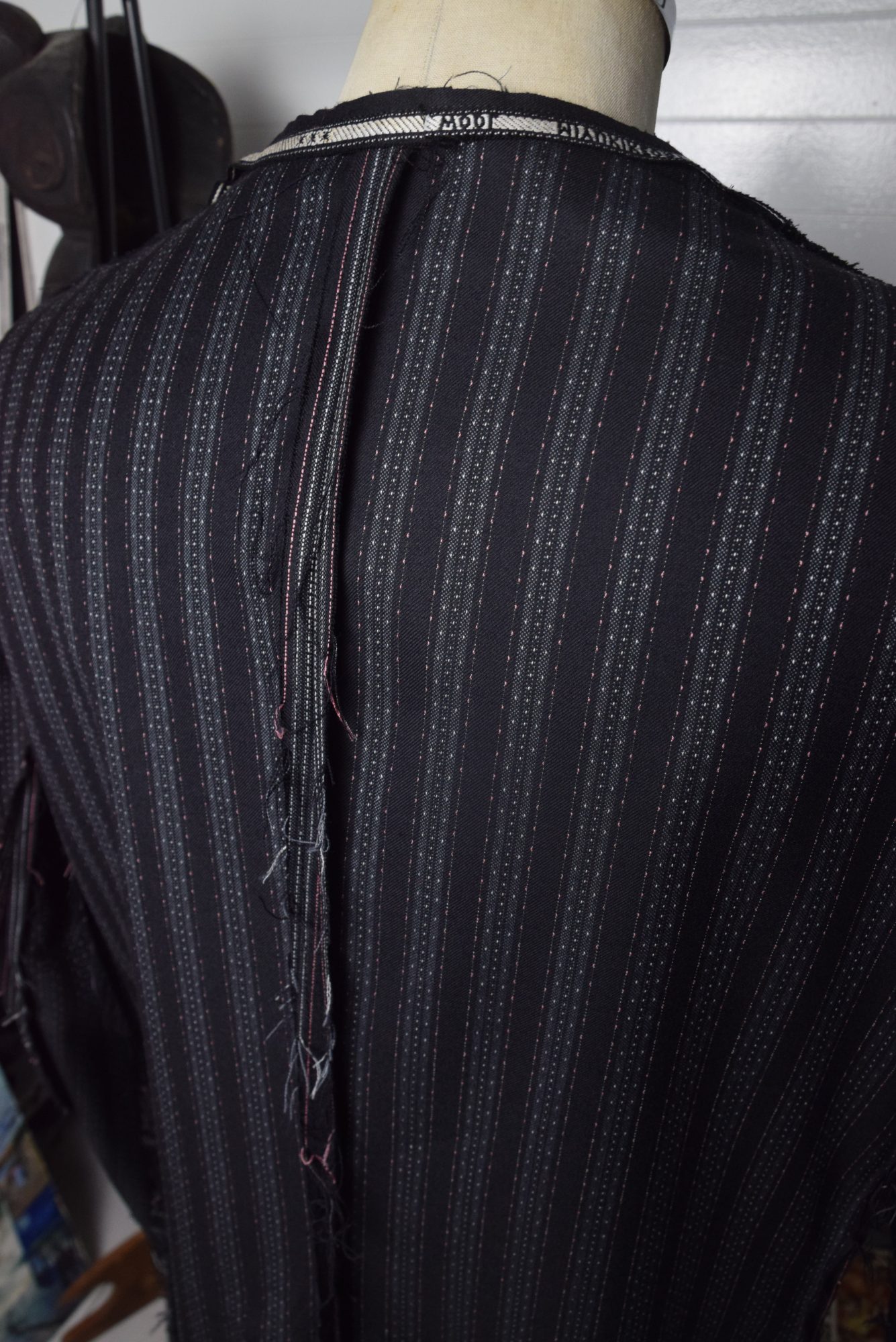 The material is a vintage wool fabric used by tailors.